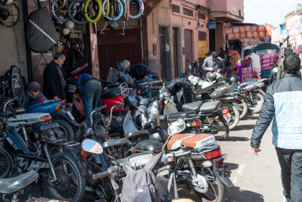 Das Moped ist das Hauptverkehrsmittel in Marrakesch und das einzige, welches es bis und durch die Altstadt schafft.