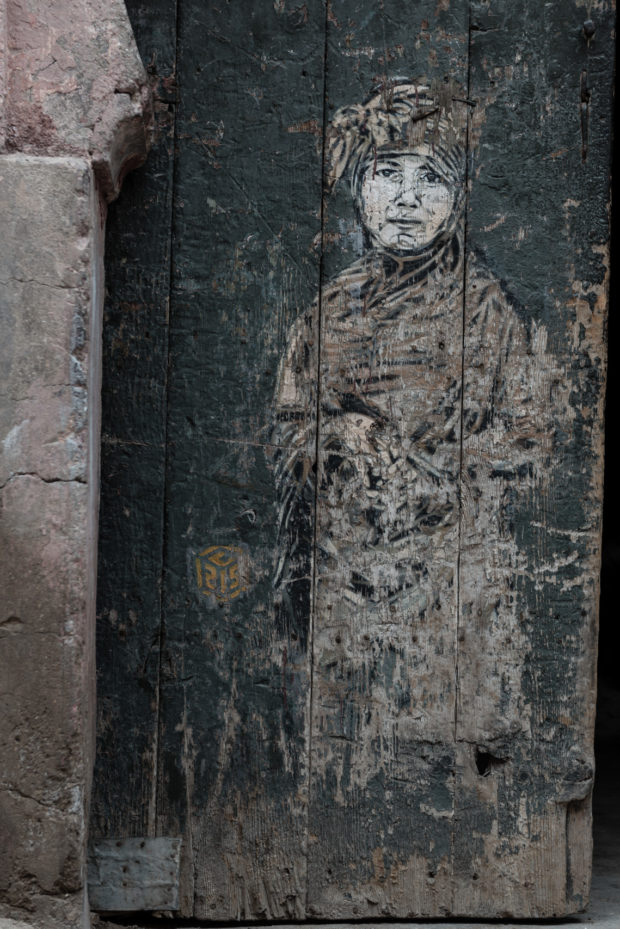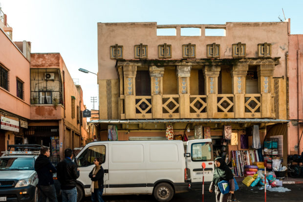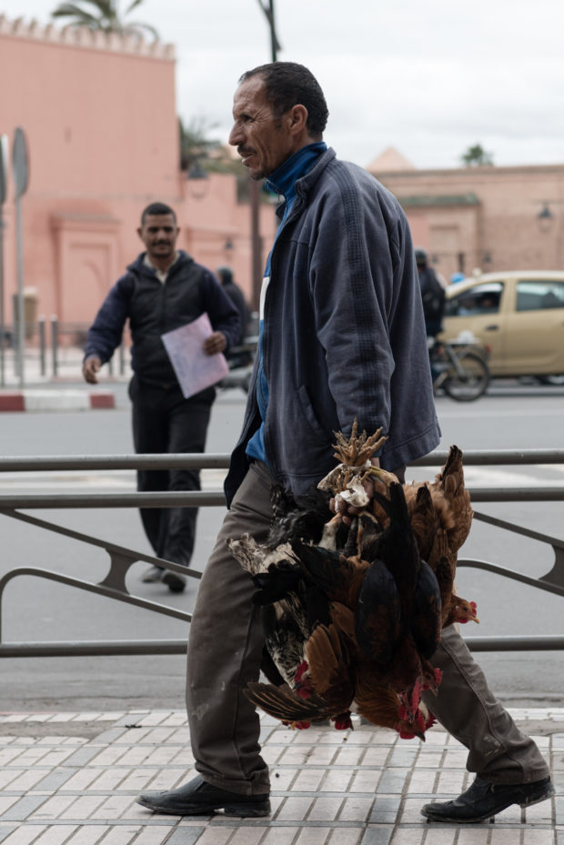 Die Altstadt von Marrakech ist eine Herausforderung für jeden Orientierungssinn. Selbst dort, wo man mal ein wenig weiter gucken kann wie hier, stellt man sofort fest, dass klassische Vorstellungen von Erdgeschoss, 1.Etage etc. hier völlig daneben liegen. Das Auge findet kaum Halt und man fragt sich, wo die Dame auf dem Bild eigentlich hingehört. Ich weiß es bis heute nicht.