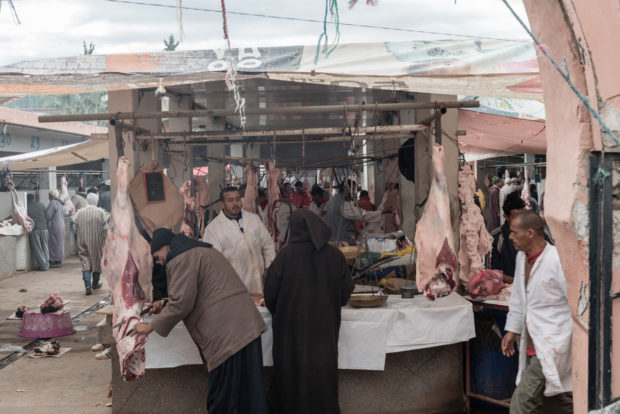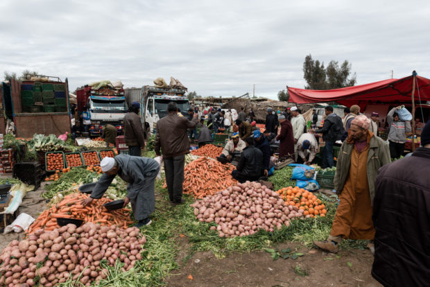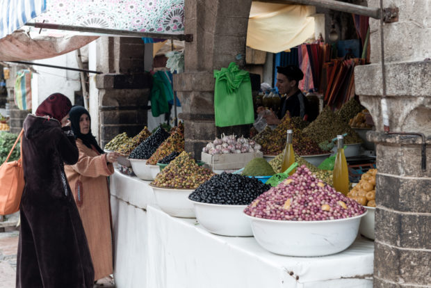 Die wenigen Touristen in Essaouria bewirken gleichzeitig, dass die Märkte in den Randbezirken fast nur von Einheimischen besucht werden. Die Berge von Oliven und sonstigen Nahrungsmitteln, die quatschenden Marktfrauen und die teeschlürfenden Herren der Schöpfung vermitteln ein beschauliches und zufriedenes Bild.