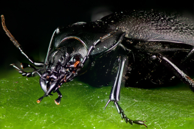 Dieser Riese unter den Laufkäfern ist bei genauerer Betrachtung (aber wer macht das schon freiwillig...?) ein Hübscher. Die orangefarbenen Tasterenden wirken filigran, ungewöhnlich und doch deplatziert.