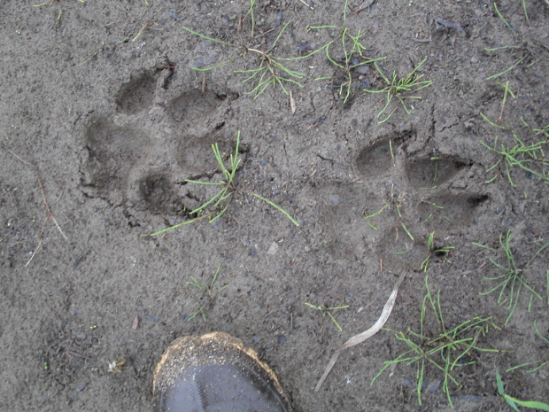 Dennoch. Wenn man morgens nach dem man aus dem Zelt geklettert ist, keine 10 Schritt entfernt frische Spuren von Canis lupus findet und dann auch noch attestieren darf, dass das definitiv kein Welpe war, schaut man sich doch noch mal vorsichtig um und tastet nach der Waffe auf dem Rücken.
