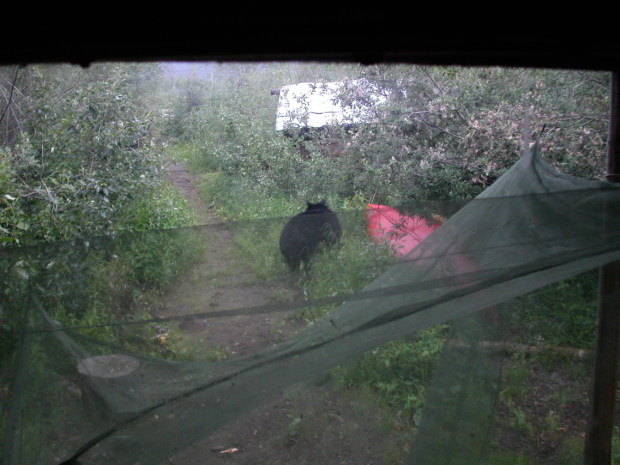 Ich hätte es wissen sollen. Der Duft zog diesen Schwarzbären an. Er stand auf den Hinterpranken und wippte mit den Vorderbranten gegen das Fenster. Dieses war glücklicherweise aus starkem Plexiglas und federte immer wieder nach. Als ich aus dem Schlaf hochgerissen mitbekam, dass der schwarze Geselle in die Hütte wollte, machte ich mit allem Krach was ich finden konnte, schrie ihn an und hatte mal wieder die Waffe im Anschlag. Wäre er durch das Fenster gekommen, hätte ich wohl schießen müssen.