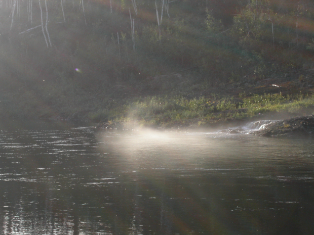 Wenn nicht gerade der Wind vom Polarmeer wehte, waren die Temperaturen etwa bei 15 Grad. Manchmal etwas wärmer. Wind war stets begehrt, auch wenn die Temperaturen dann fielen, da der Wind die Moskitos verwehte und die Viecher einen am Fluss nicht anfliegen konnten.