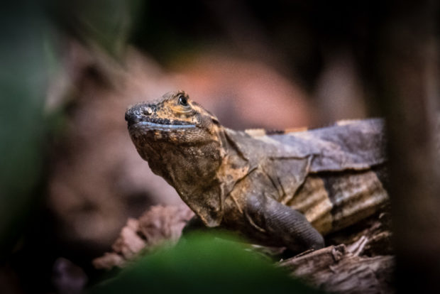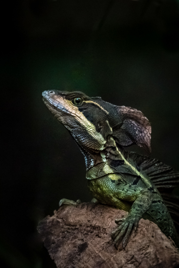 Auch hier finden sich (diesmal braune) Basilisken und dieser Vertreter hier wollte wohl Modell werden und hält wunderbar auf Augenhöhe still. Leider waren auch hier die Lichtverhältnisse bescheiden und nicht immer will man mit einem Blitz draufhalten.