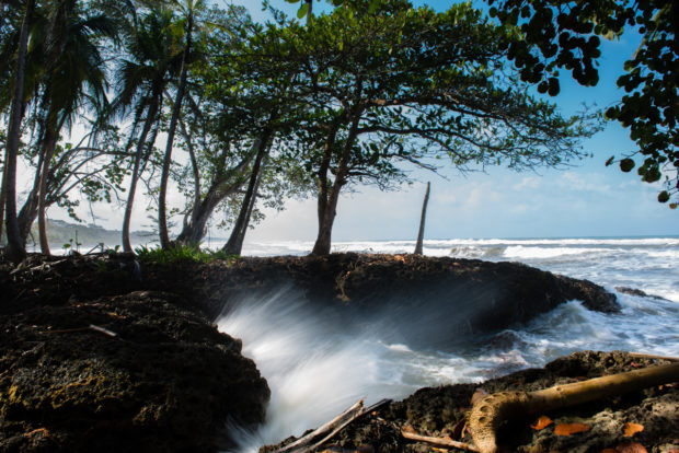 Die Karibik-Küste von Costa Rica hält jedem Klischee stand. Die Sonnenuntergänge stehen dem in nichts nach. In der Kombination wird es schon fast kitschig. Richtig angenehm ist es, wenn das Ganze sich sozusagen am Abend(b)rot-Tisch des einfachen, aber sehr leckeren Restaurants abspielt, welches noch an Hand der Lichter auf der linken Seite erahnbar ist.
