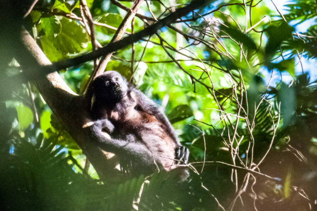 Selbst über Kilometer hört man die Brüll-Affen im Dschungel "rufen". Der Sound hat in der Endphase etwas von einem startenden Düsenjet und die Lautstärke ist für solch an sich recht kleine Affen doch sehr beachtlich. Das Gute daran ist natürlich, dass man sie gut orten und in den Baumkronen ausmachen kann.