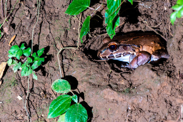 Auf einer Nachtwanderung in Tirimbina finden wir einige dieser Kröten, die in einer Erdhöhle hausen, sich nachts an den Eingang derselben setzen und auf vorbei laufende Beute warten. Das war´s.