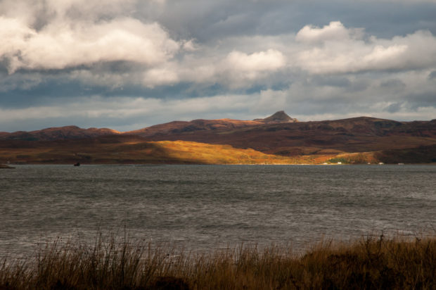 Die Temperatur ist noch erträglich, der Regen meist moderat und man hat nur wenige Augenblicke um solch einen wandernden Lichtfleck in den Highlands zu fotografieren. Typisch Schottland.