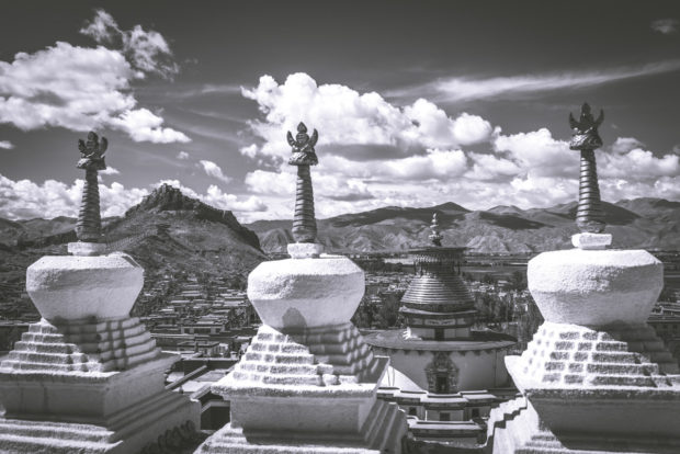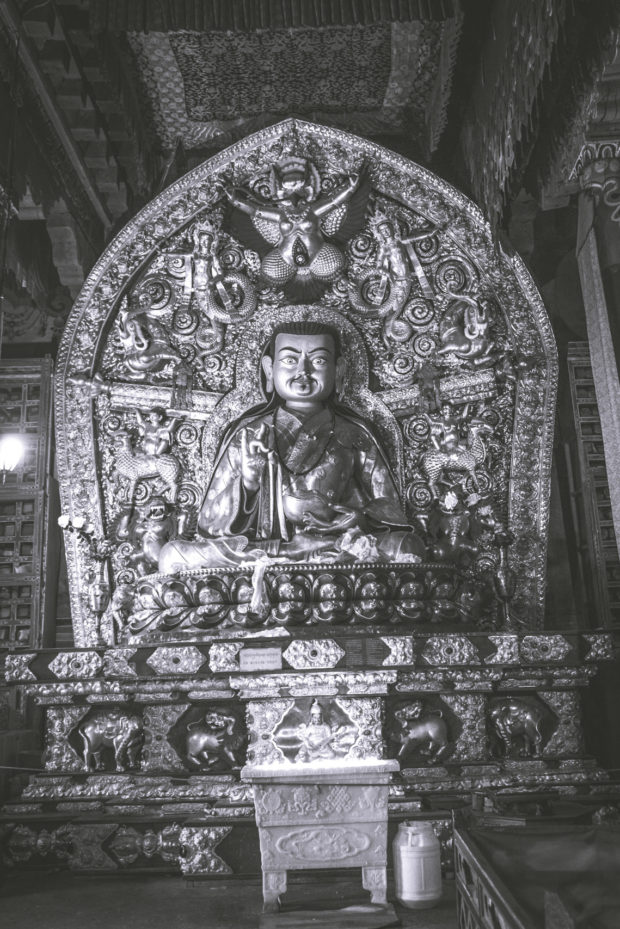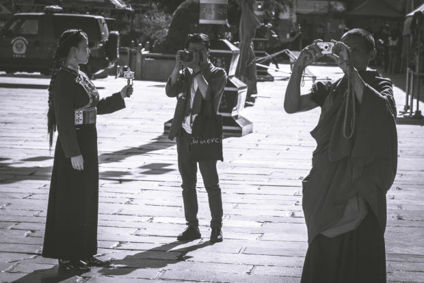 Der geneigte Tourist kann sich Models in traditioneller Tracht mieten und vor dem Tempel ablichten. Der tibetische Mönch verzichtet auf das Model und lichtet sein Heiligtum pur ab.