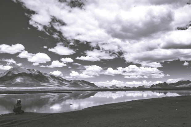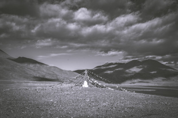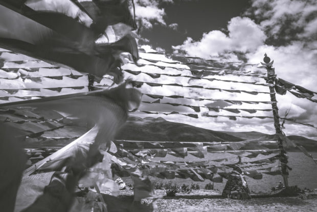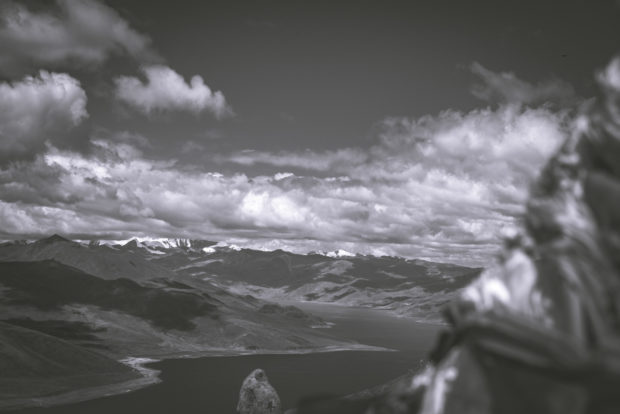Wenn die Anzahl an Gebetsfahnen ein Ausdruck der Wertschätzung für einen Ort im tibetischen Buddhismus ist, muss dieser Platz am See ein besonderes Heiligtum sein. Das Knattern der Fahnen im kalten Wind, die Opferschreine und die überwältigende Landschaft lassen auch den Nicht-Buddhisten innehalten.