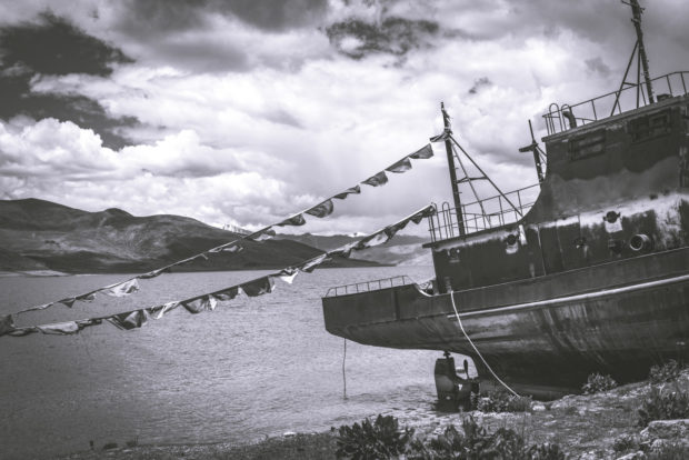 Es dürfte nur wenige echte Schiffe geben, die auf einem höheren Gewässer schipperten als dieser Fisch-Trawler auf dem Yamzho Yunco in 4440m üNN.