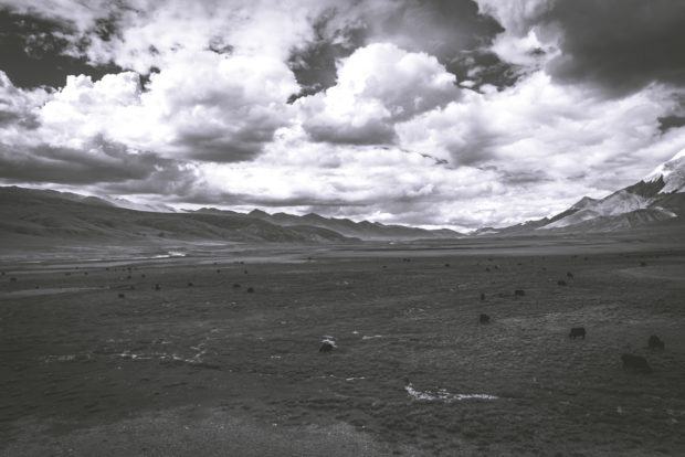 Weidewirtschaft in Tibet ist einfach: Yak raus und fertig. Keine Zäune weit und breit. Die Yaks sind geschmückt oder anderweitig gekennzeichnet um klar zu stellen, wem welches der urigen Tiere gehört. Ansonsten bleiben die Tiere Sommers wie Winters draußen und knabbern an dem kargen Gras auf den Hochebenen Tibets. Das Einzige an dem es nicht mangelt ist Platz.