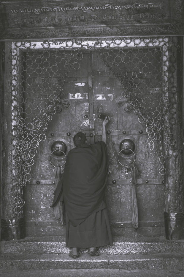 Wenn man sich anschaut, wie die Mönche ihre Klöster verschließen, scheint ihnen schon bewusst zu sein, wieviele Werte sich in ihrem Innern befinden. Der Schlüsselbund dieses Mönches könnte bei der Größe der befestigten Schlüssel in einem europäischen Fitness-Studio auch problemlos als Ersatz-Hantel dienen.