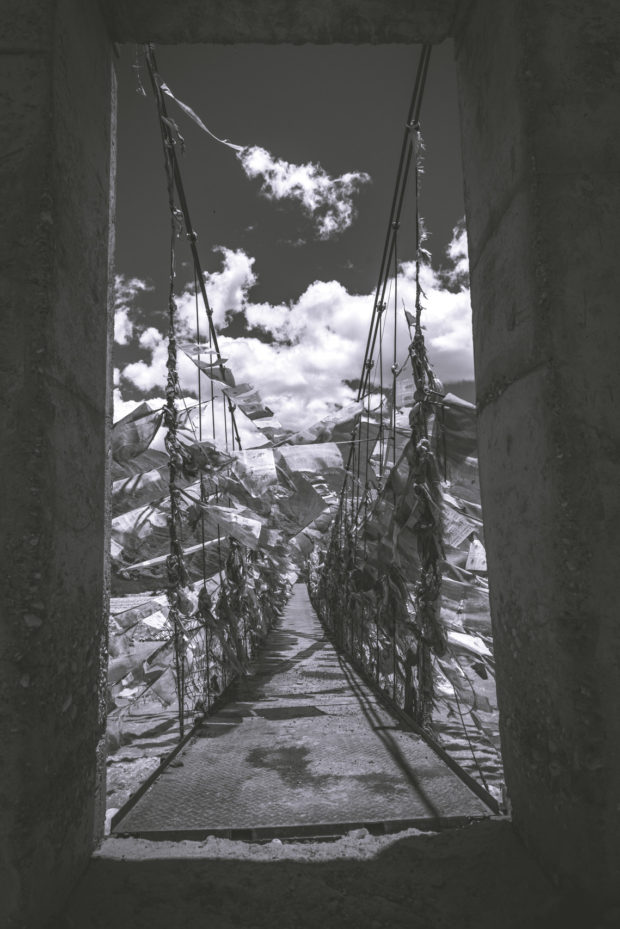 Ein reissender Gebirgsfluss aus dem Himalaya, der später in den Tsangpo mündet, welcher später in Indien Brahmaputra heißt, fordert vom Pilger einiges an Gottvertrauen. Nicht umsonst ist die Brücke über diesen Fluss mit tausenden von Gebetsfahnen geschmückt, welche im Wind ohrenbetäubend knattern.