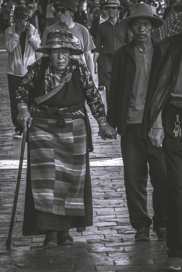 Auch diese beiden beschreiten die Kora zum Jokhang-Tempel gemeinsam. Langsam und gebrechlich aber dennoch zielstrebig.