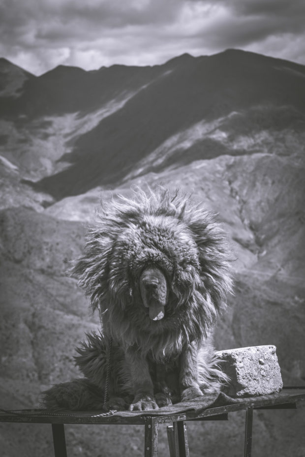 Auf Höhen oberhalb unserer Alpen Herden vor diversen Raubtieren zu schützen ist nichts für Kuscheltiere. Auch wenn dieser Herdenschutzhund (die Rasse nennt sich wohl Tibetanische Dogge oder auch Tibetanischer Mastiff und ist angeblich die teuerste Hunderasse der Welt) äußerlich sicherlich zum Kuscheln einlädt - was er auch klaglos über sich ergehen lässt, wenn Touristen sich mit ihm ablichten lassen wollen.